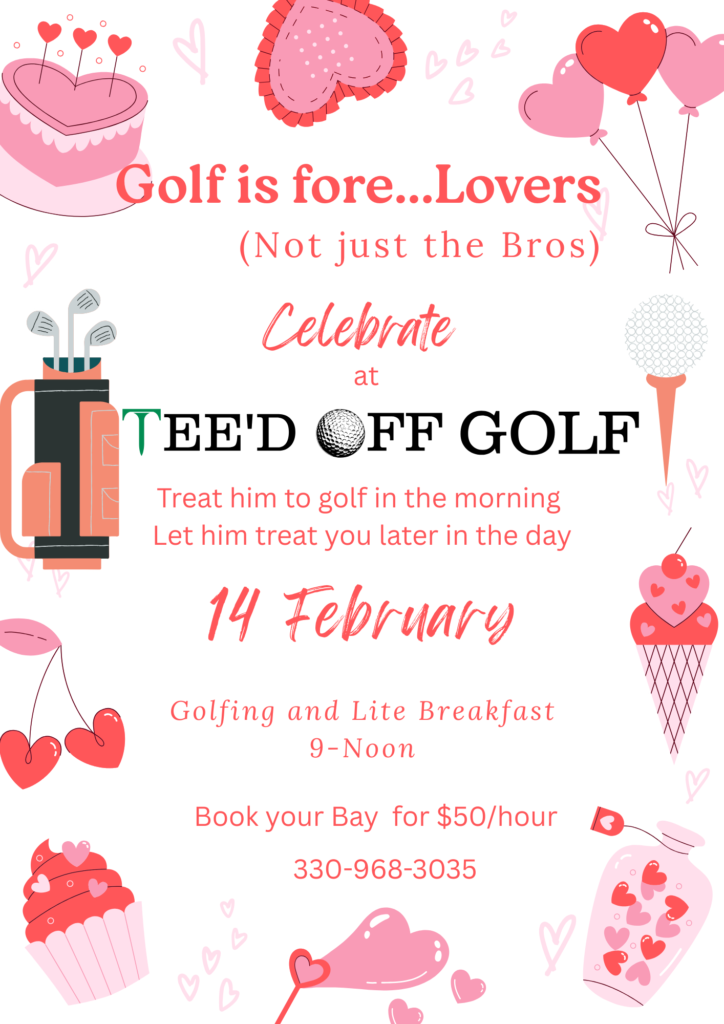 Tee’d Off Golf is a new business located in Kent, Ohio. We offer golfing indoors with three state of the art golf simulator bays. Each bay is designed for up to four players. It’s not only for the avid golfer but also for those looking for something fun to do.